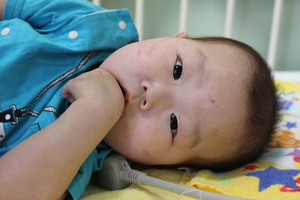酸素は、ほんの少量ではありますが、少しでも心臓の負担を軽くするために必要で、鼻から入れている管も、まだ口からミルクを飲んだり、お薬を飲んだりするのが苦手なたけるにとっては、大事なモノです。